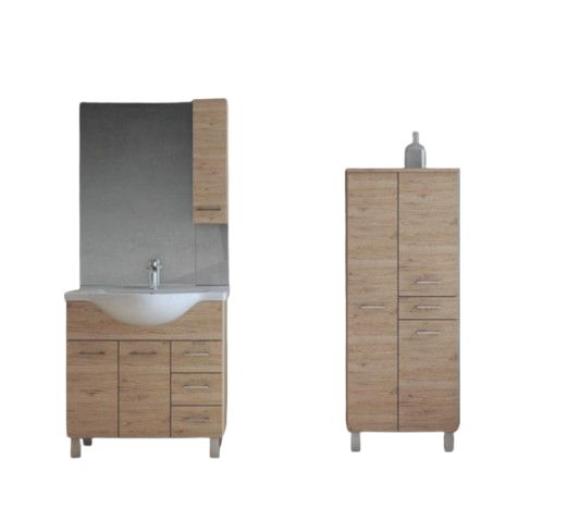 BASE 85 CM LAVABO NEW CONSOLE E SPECCHIERA SPECCHIERA DA 81 CM LAMPADA LED + COLONNA DOPPIA. FINITURA QUERCIA NATURALE.