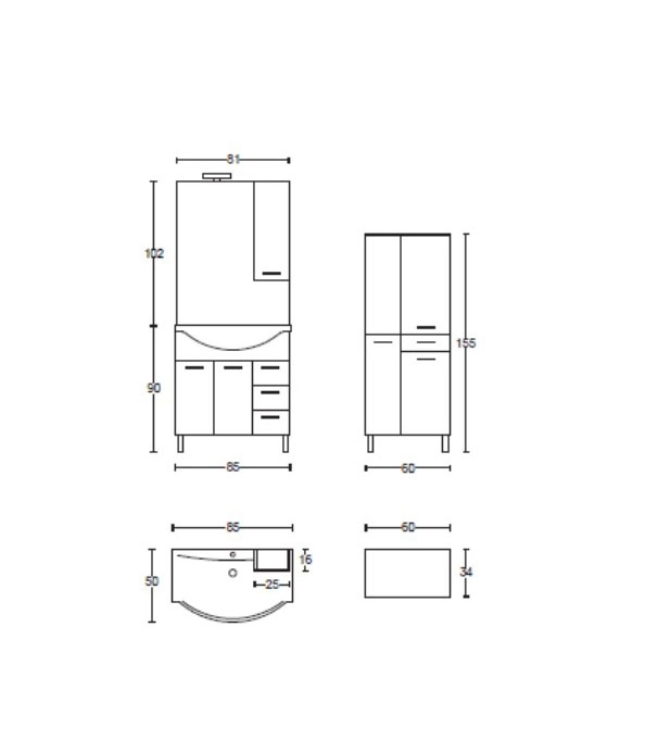 BASE 85 CM LAVABO NEW CONSOLE E SPECCHIERA