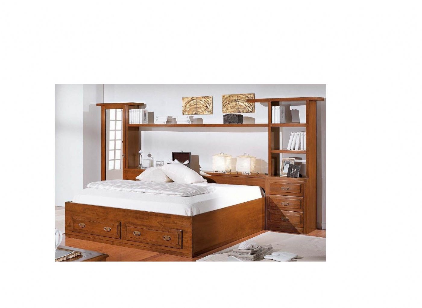 LETTO CON CONTENITORE E PANCA APRIBILE ALLA TESRA CON MENSOLE