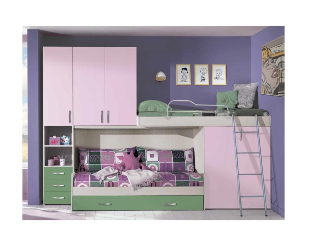 CAMERETTA A PONTE CON DIVANO CON LETTI MISURA L 349.3 H 245.3 P 94.4 COLORE LILLA E VERDE (POSSIBILITA VARI COLORI)