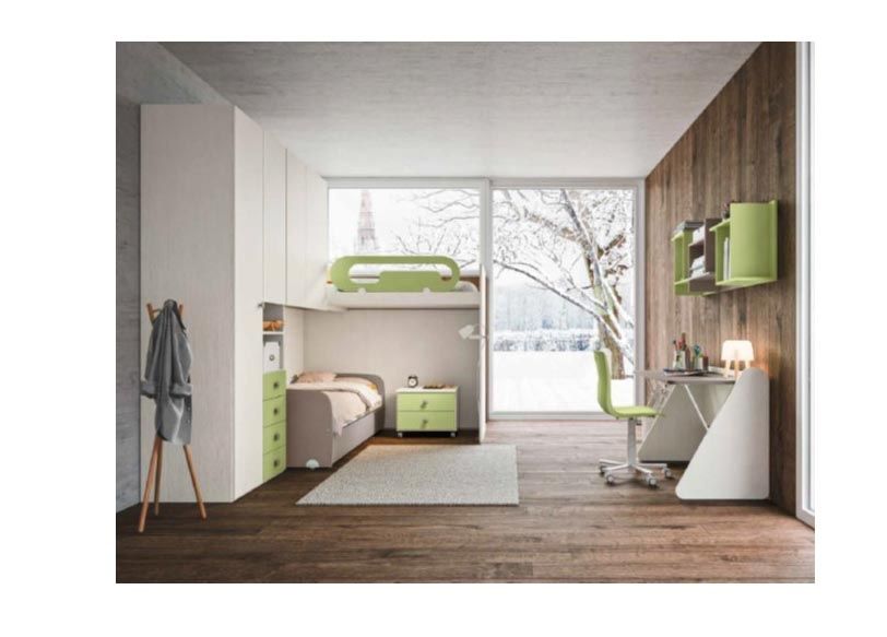 ARMADIO 4 ANTE CON SOPPALCO E 2 LETTI AD ANGOLO MISURA H251.2 FINITURE DELLA CAMERETTA OLMO LUCE, LATTE E MENTA CACAO POSSIBILITA ALTRI COLORI