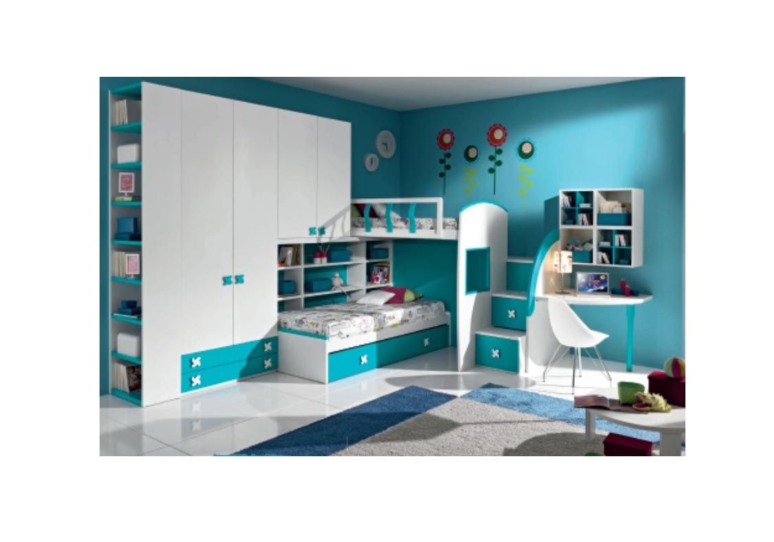 CAMERETTA CON LETTO A SOPPALCO BIANCO PURO/ VERDEMARE COMPOSIZIONE SOPPALCO MISURA L 385X347 H 259 DISPONIBILE IN ALTRI COLORI LACCATO € 4240