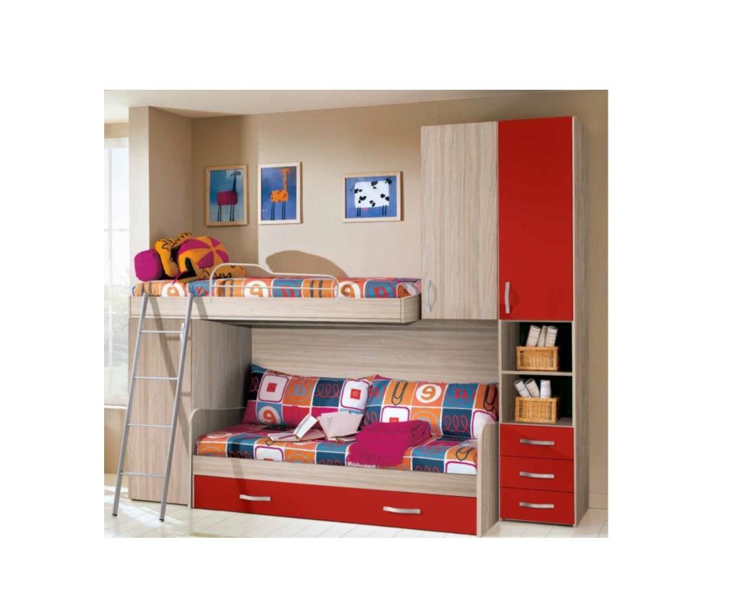 CAMERETTA CON LETTO A SOPPALCO CON DUE LETTINI A PONTE COME FOTO (POSSIBILITA VARI COLORI) MISURA L 298.9 GH 245.3 P 94.4