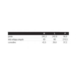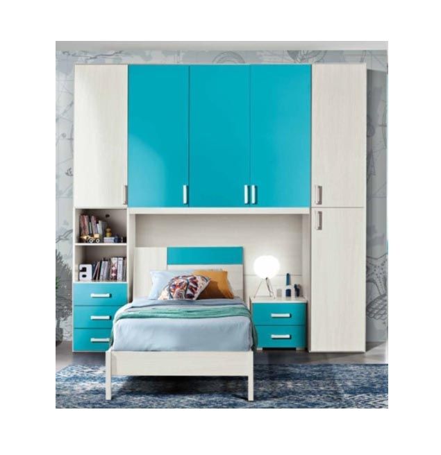 CAMERETTA DA LETTO A PONTE MISURA L.242,8 H. 245,3P.222,8. COLORI:KIRI TURCHESE.