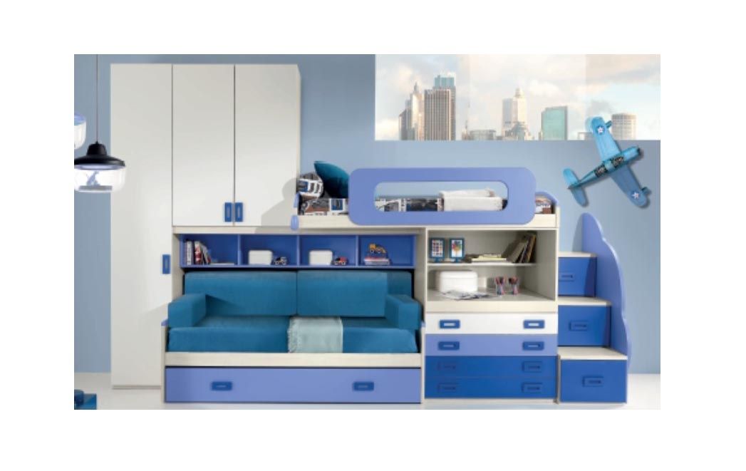 CAMERETTA LINEARE A SOPPALCO MISURA L 403 H 259.2 P 58/96 COLORI BETULLA/BIANCO PURO/PERSIA/ACCIAIO LACCATO € 2605.00