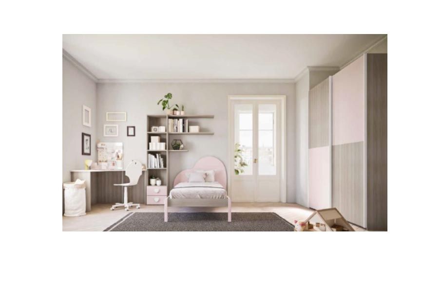 CAMERETTA MODERNA ARMADIO SCORREVOLE E SCRIVANIA ANGOLARE 2 ANTE MISURA H 2.32 FINTURA DELLA CAMERETTA FRASSINO NATURA ROSA PASTELLO POSSIBILITA ALTRI COLORI
