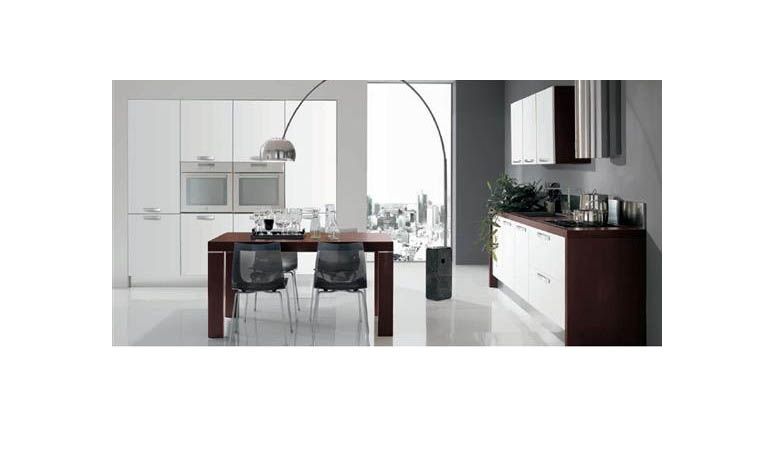 CUCINA DUE PARETI ANTE BIANCHE E TAVOLO WENGE’