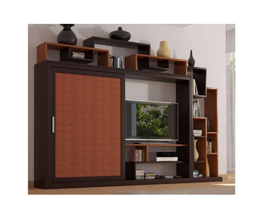 LIBRERIA SOGGIORNO MISURA L.3,06. P.47 H. 2.34. PATINATO LACCATO COLOR WENGE’ SCOCCA E FIANCHI. ANTA SCORREVOLE E DUE VANI A GIORNO PATINATA VERNICIATA COLOR CILIEGIO.