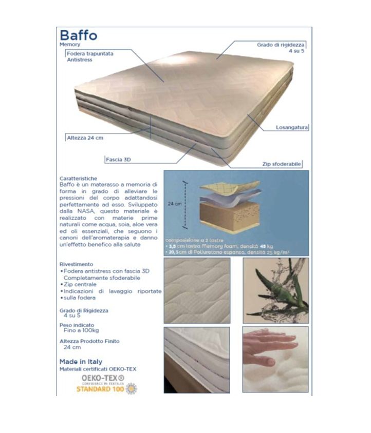 MATERASSO BAFFO MISURE: 80 X 1.90 H 24 €. 225,00 MISURE: 1.20 X 1.90 H 24 €. 322,50 MISURE: 1.60 X 1.90 H 24 €. 375,00 IN COLLABORAZIONE CON ALTRE DITTE.