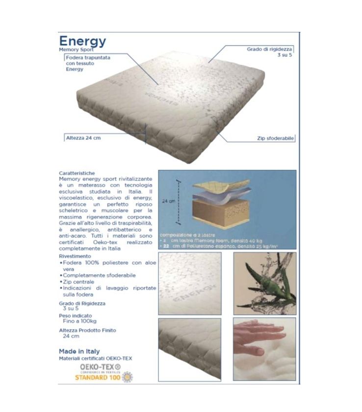 MATERASSO ENERGY MISURE: 80 X 1.90 H 24 €. 150,00 MISURE: 1.20 X 1.90 H 24 €. 210,00 MISURE: 1.60 X 1.90 H 24 €. 255,00 IN COLLABORAZIONE CON ALTRE DITTE.