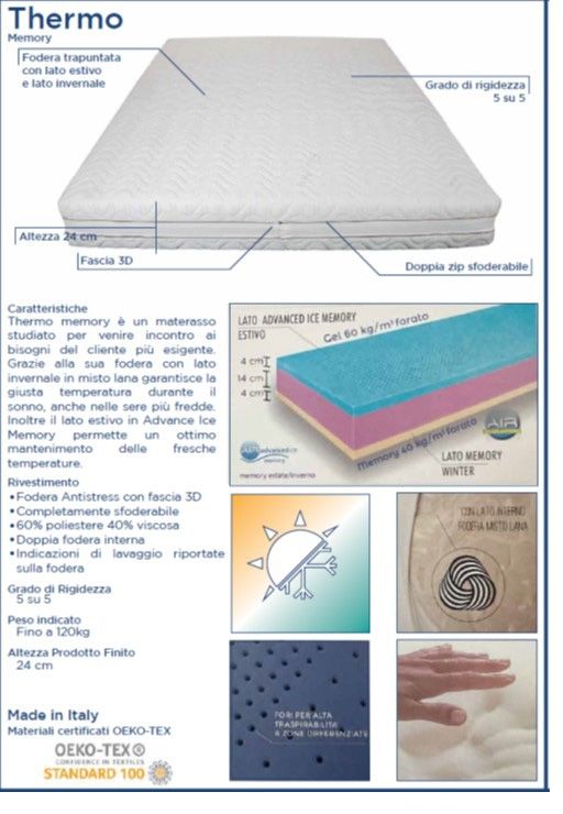 MATERASSO THERMO MISURE: 80 X 1.90 H 24 €. 323,00 MISURE: 1.20 X 1.90 H 24 €. 435,00 MISURE: 1.60 X 1.90 H 24 €. 555,00 IN COLLABORAZIONE CON ALTRE DITTE.