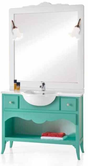 MOBILE BAGNO 2 CASSETTI LACCATO COLOR VERDINO CON MINERALMARMO BIANCO. MISURA L.1.08. H.80. P. 50. H.TOT.2.04.
