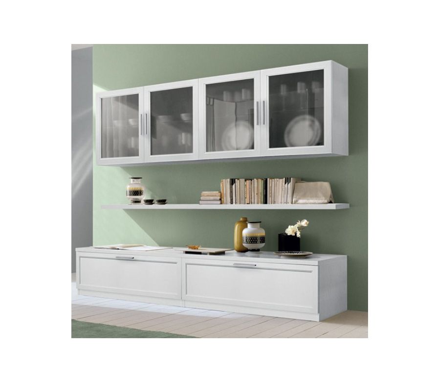 SOGGIORNO CON PENSILI E CESTONI MISURA L.1.80. H. 2,54.P.58.2/35.00 COLORE BIANCO PERLA