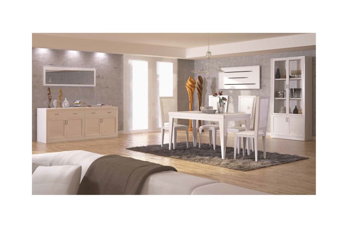 SOGGIORNO LACCATO CON CREDENZA AVORIO TAVOLO E LIBRERIA