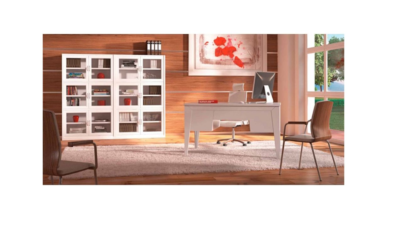 STUDIO LACCATO LIBRERIA MISURA L.2.12. P.36. H.1.76. SCRITTOIO MISURA L.1.45. P.70 H. 79. PATINATO E LACCATO AVORIO SCRITTOIO E LIBRERIA BIANCA
