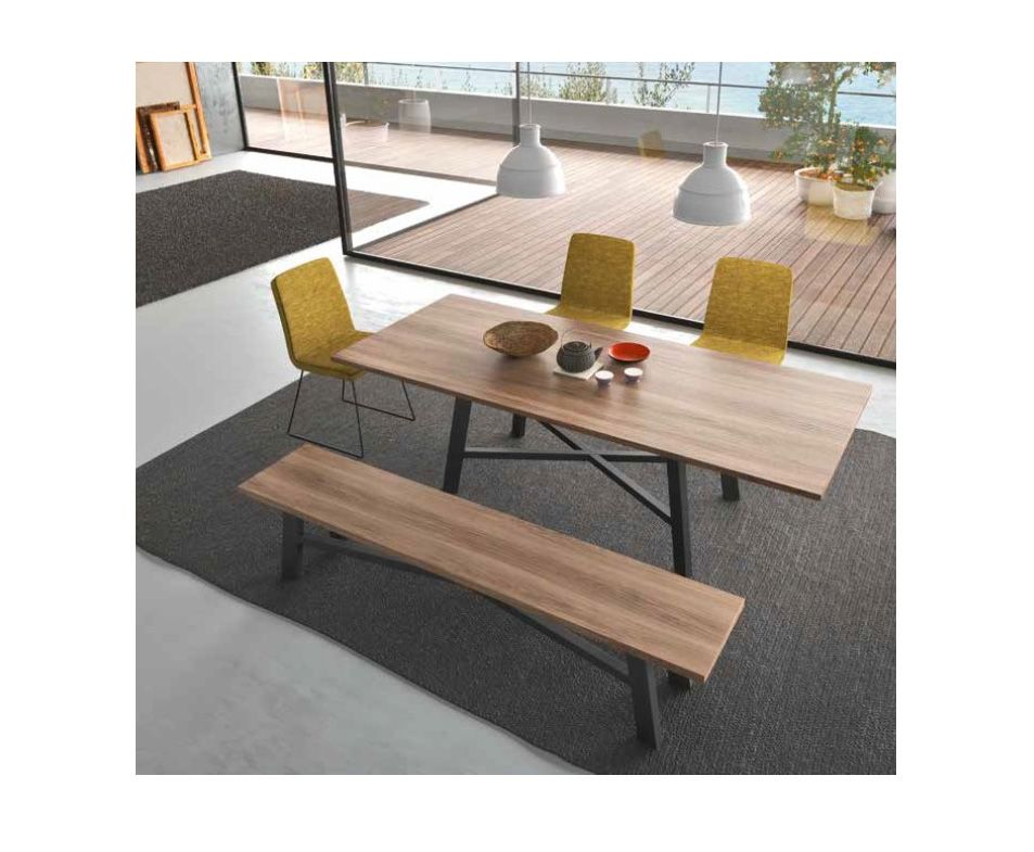 TAVOLO E PANCA TAVOLO L. 2,10 H. 76 P.91 FINITURE BOSCO BASAMENTO GHISA. PANCA L. 2,10 H. 76 P.40 FINITURE BOSCO BASAMENTO GHISA.