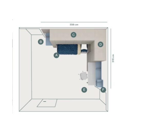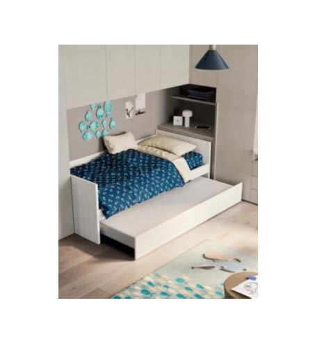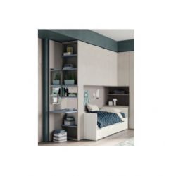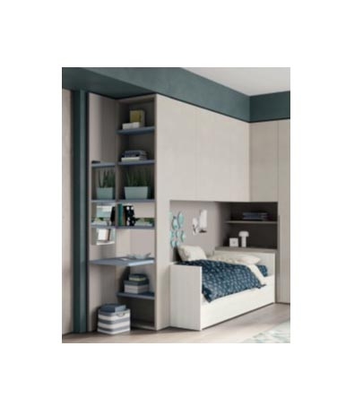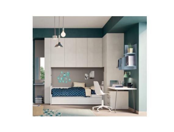 CAMERETTA CON ARMADIO A PONTE DIVANO LETTO CON SECONDO LETTO ESTRAIBILE SCRIVANIA LATERALE CON LIBRERIA SOSPESA PIU COMODINO PER SCRIVANIA. POSSIBILITA ALTRI COLORI
