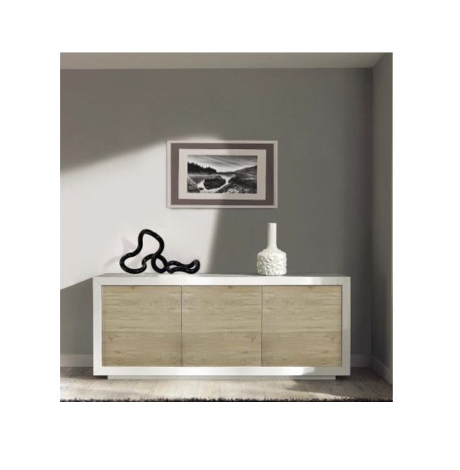 MADIA VERTICALE CONTEMPORANEA MISURA L. 1,90 H. 75. P. 52. STRUTTURA LACCATA OPACA RAL 9010 ANTE ROVERE NATURALE.